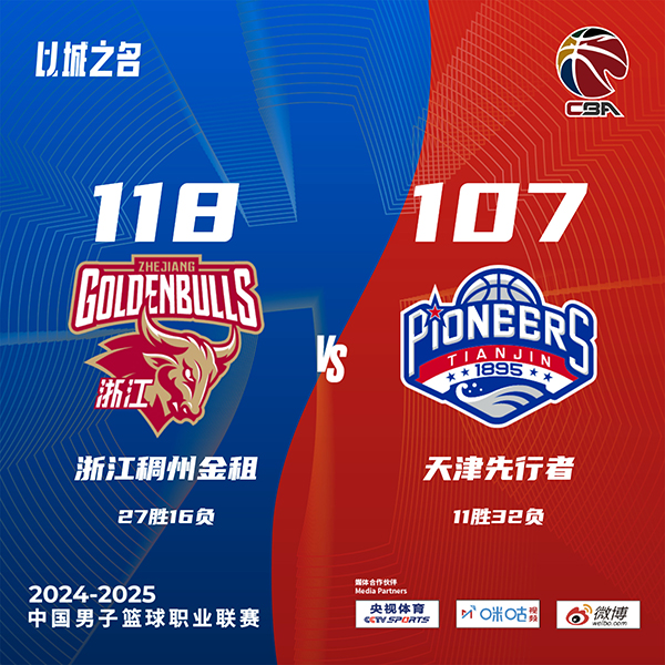 24直播网讯 北京时间3月22日讯 CBA常规赛,浙江主场迎战天津。浙江26胜16负排在联赛第10,天津11胜31负排在第16。上半场,浙江率先发力,内外开花取得两位数领先,天津不断冲击内线努力追赶,浙江连中三分迅速回应,次节双方大打对攻,约克火力全开,连中三分带队保持优势,半场战罢浙江66-53领先天津。下半场,天津发起反击缩小分差,约克延续火力带队保持优势,末节两队继续对攻,浙江火力更猛不断扩大优势,杜伯超和王奕博发生口角双双吃T,杜伯超犯满离场。最终,浙江118-107轻取天津,主场过关。
