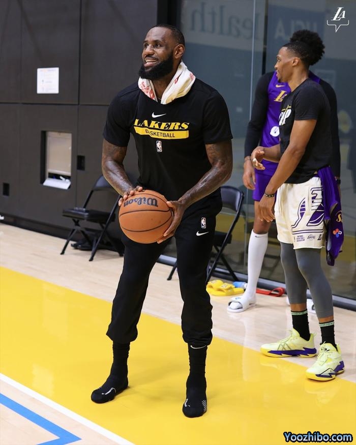 湖人官方晒三巨头训练照:詹皇赤脚威少大笑 浓眉已准备好担任新领袖