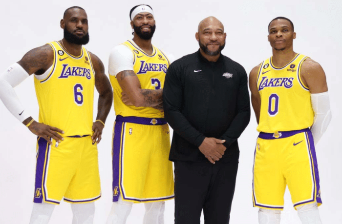 当被问及除了威少、詹姆斯和浓眉外,球队的另两位首发是谁时,哈姆打趣道:“贾巴尔、詹姆斯-沃西、拜伦-斯科特。