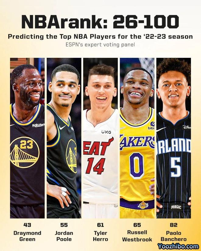 来源:24直播网09-24 22:1424直播网09月24日著名NBA媒体ESPN评出了一年一度的NBA新赛季百大球员,今日放出了100-26的球员,具体排名如下: