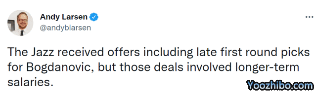 首先,爵士记者Larsen透露,爵士在达成博扬这
