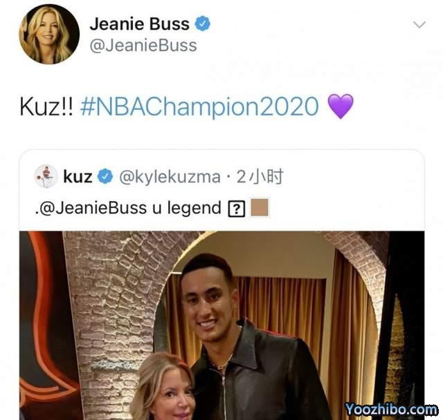 从照片当中可以看出库兹马和珍妮阿姨应该是在一家餐厅或者是类似的公众场合进行了合照,不过并不清楚他们两人是否相约一起吃饭。库兹马率先在社交媒体发布了这张照片,还夸赞珍妮阿姨是一个传奇人物,而珍妮紧接着转发也是夸赞了库兹马。自从上赛季库兹马被交易到湖人之后,他和珍妮阿姨的互动就变少了很多,此次再度看见他们的同框合照,不少网友也是调侃他们两人是旧情复燃,甚至还相约一起吃饭了。