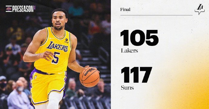 北京时间10月7日,2021-22赛季NBA季前赛继续进行,菲尼克斯太阳队迎战洛杉矶湖人队。最终,太阳队以117-105战胜湖人队。