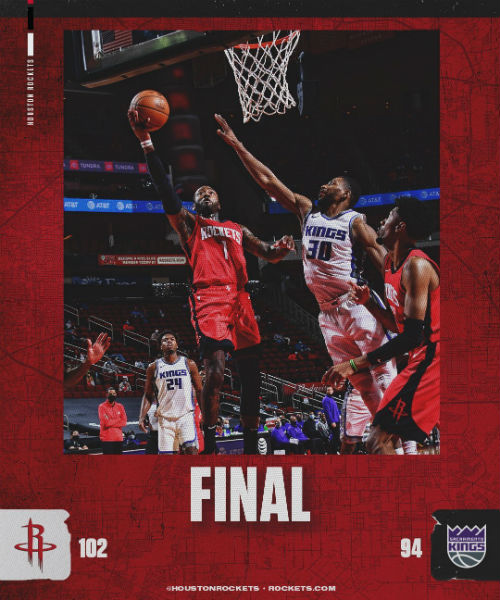 来源:24直播网01-03 12:26 24直播网讯:北京时间1月3日,2020-21赛季NBA常规赛继续进行,休斯顿火箭坐镇主场再战萨克拉门托国王。全场打完,火箭102-94击败对手,喜获两连胜。