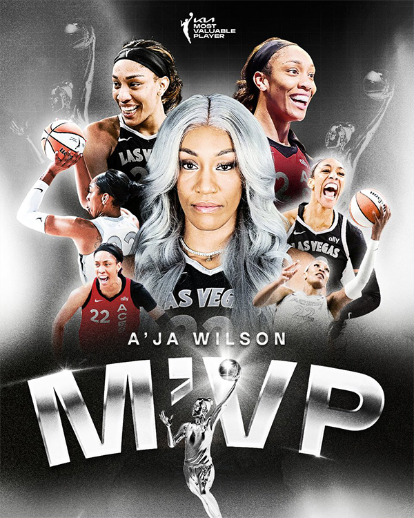 阿贾-威尔逊全票荣获MVP,湖人球星詹姆斯连续转发多张海报,祝贺她获此殊荣。