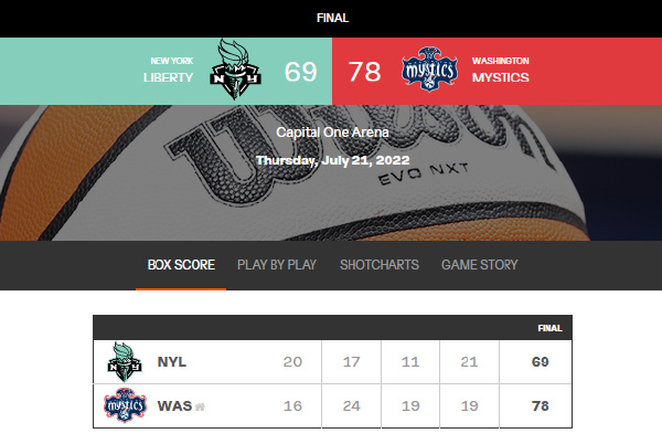 - 【录像】[咪咕]WNBA常规赛 纽约自由人vs华盛顿神秘人 全场录像回放2022-07-22 07:30:15