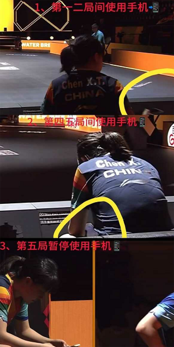 陈幸同看手机的事情是在女子总决赛的单打半决赛,陈幸同VS王艺迪第五局,陈幸同看手机6秒,被镜头记录了下来。后期被球迷们扒出在此前的局间休息也疑似看手机,引发争议,甚至还有网友出了按照规定,这是明显的违规,应该被罚款和禁赛的处罚, 这件事情在网络上一度引发热议,还冲上热搜榜的前列。