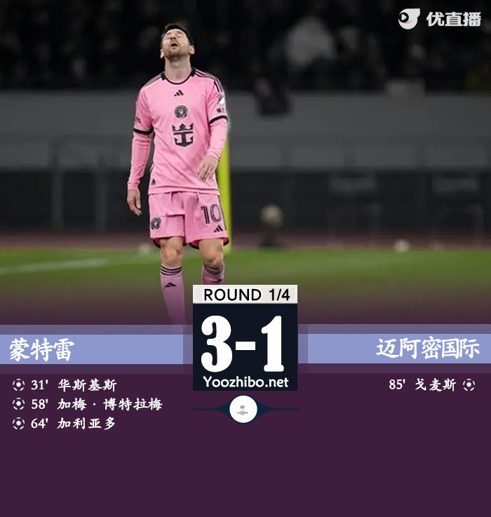 - 【集锦】[美冠杯全场集锦] 美冠杯-后防崩盘!迈阿密国际1-3蒙特雷总分2-5遭淘汰2024-04-11 11:27:04