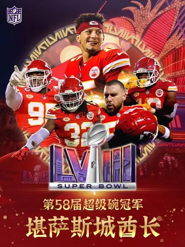 24直播网讯 北京时间2月12日大年初三上午,一年一度的“美国春晚”,第58届NFL超级碗在拉斯维加斯举行,国联冠军旧金山49人对阵志在卫冕的美联冠军堪萨斯酋长。最终,酋长25-22加时绝杀49人夺冠,马霍姆斯成功卫冕!