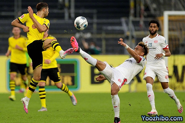 第33分钟,美因茨率先打破僵局!反击机会中博埃迪乌斯右路45度传中进禁区,布尔卡特头球顶进球网,多特主场0-1落后。