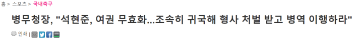 而石现俊显然违反了这一规定,他在去年12月就已被韩国兵务厅拉入逃避兵役名单。现在,韩国外交部已经取消了他的护照资格,而韩国兵务厅则要求石现俊回国接受刑事处罚并服兵役。