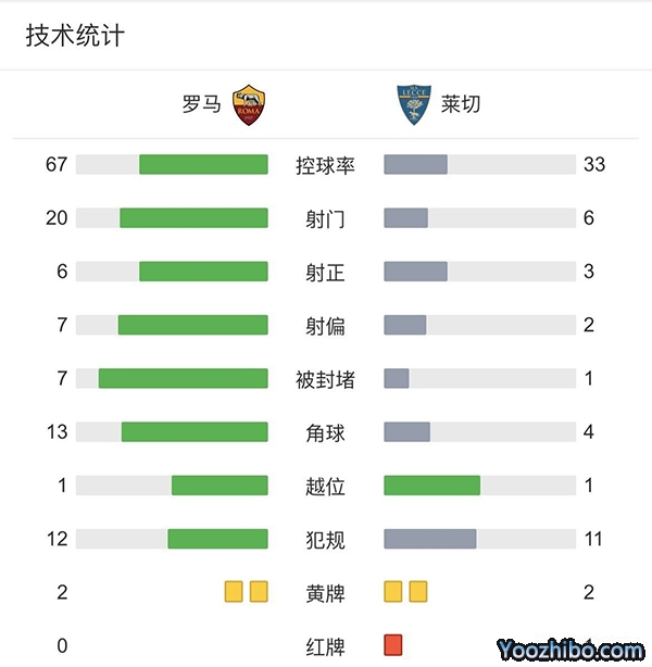 24直播网讯:北京时间10月10日凌晨2点45分,意甲第9轮一场焦点战役在罗马奥林匹克球场开打,罗马对阵莱切,乌姆蒂蒂迎来个人在莱切首秀。本场比赛当值主裁判为普隆特拉。上半场开场不久,佩莱格里尼助攻斯莫林完成闪击。随后,赫尤尔曼德飞铲贝洛蒂被直红罚下,莱切十人应战。半场结束前,埃斯佩托为客队扳平比分。下半场,亚伯拉罕造点,迪巴拉点射连续3场比赛破门,不过主罚点球时迪巴拉受伤,随即被马蒂奇换下。全场比赛结束,罗马主场2-1击败十人莱切。