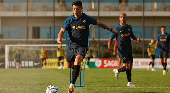 C罗回到葡萄牙队,备战接下来的欧国联,对手是捷克和西班牙队。穿上国家队的衣服之后,C罗心情大好,他冲着镜头摆出大拇指,同时与主帅桑托斯热聊。能够回到国家队备战,对于C罗来说是很重要的,因为距离世界杯还有2个月的时间,而且本届世界杯是在联赛中期举办的,所以联赛中保持好的状态非常关键的。