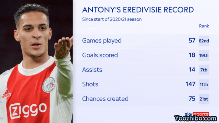 曼联引进安东尼一波三折,最初的8000万欧元被拒绝,随后提升到9000万欧元仍未获接受,红魔最终只好满足了阿贾克斯的1亿要价。从转会谈判角度来说,曼联属于彻底失败。安东尼的转会费1亿欧元,已经追平2016年博格巴加盟时的转会费纪录。但由于欧元对英镑汇率下跌,以英镑计算转会费时,其转会费只能与队长马奎尔的8500万英镑持平,落后于博格巴的9000万英镑,排名第二。在英超引援身价榜上,他也仅次于博格巴、卢卡库(加盟切尔西)和格拉利什。2020年从巴西圣保罗加盟阿贾克斯后,安东尼在82场比赛中为阿贾克斯打入25球,助攻22次,包括欧冠中的11场7球。当然,其数据仍然无法支撑1亿欧元的天价,是一笔溢价严重的转会交易,与博格巴如出一辙。