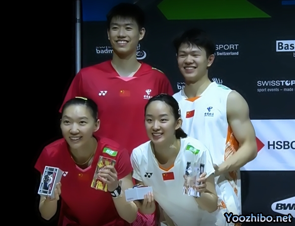 24直播网讯 北京时间03月24日,2025瑞士羽毛球公开赛混双决赛冯彦哲/魏雅欣vs朱一珺/张驰,冯彦哲/魏雅欣以2-0击败队友朱一珺/张驰,获得冠军!比分为21-13、21-15。
