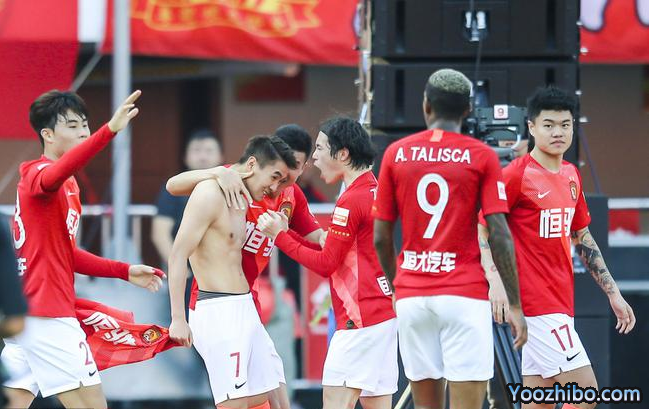 广州恒大淘宝:第45+2分钟,郑智斜传,韦世豪近距离破门